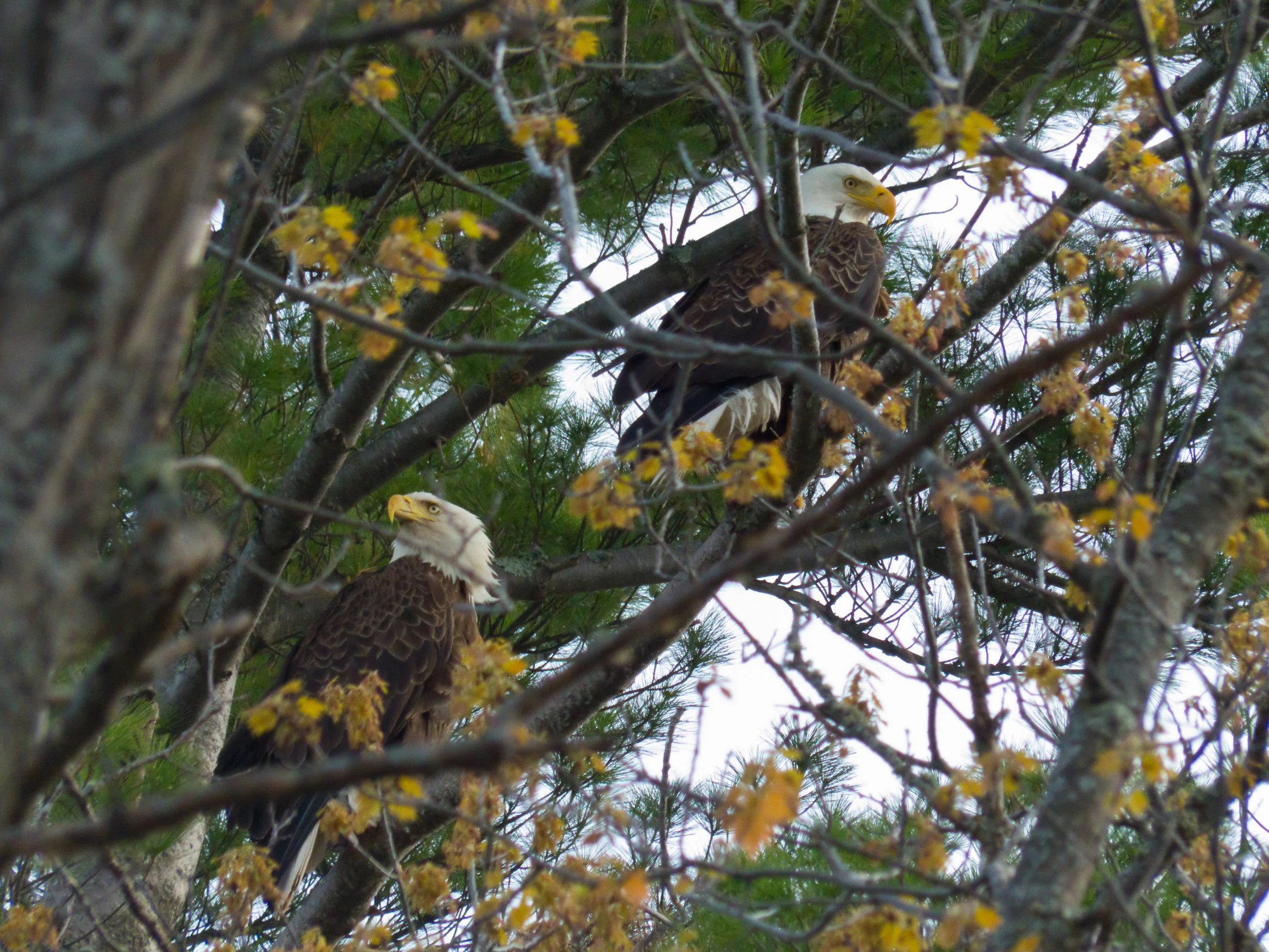 Back home in Madison I have previously followed for about 5 years a pair of red tailed hawks who had a nest on my bike route to work. I read up on hawk behavior at that time and some of the observations on these eagles extrapolates from what I learned about hawks. The parents do not seem to spend the night either on the nest or near it except when there are eggs to incubate and very young eaglets to feed. They remain in the area in the winter and check in almost daily on the nest or on their favorite roosts near the nest even though our lake freezes over so there is no open water for fishing. There must be an area with open water, perhaps near a dam with a spillway, where they can catch fish for sustenance over the winter. Even in the winter they will sometimes spend hours just roosting on a branch near the nest, perhaps to keep the claim on the very large nest from other eagles who might appropriate it. However, they don’t seem to use the nest to sleep overnight, even though the northern Wisconsin winter nights can be frigid.