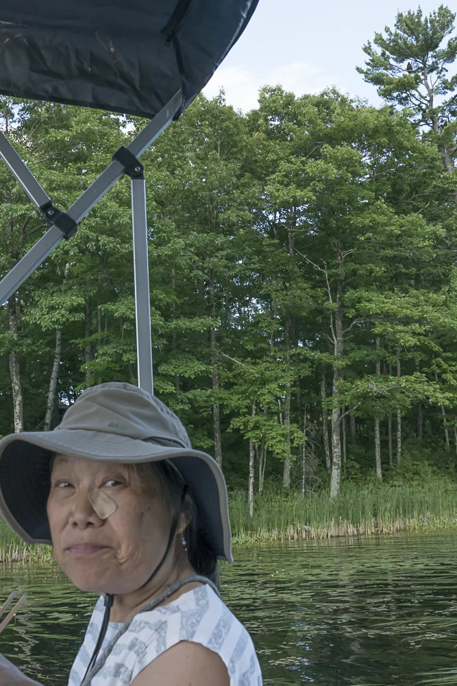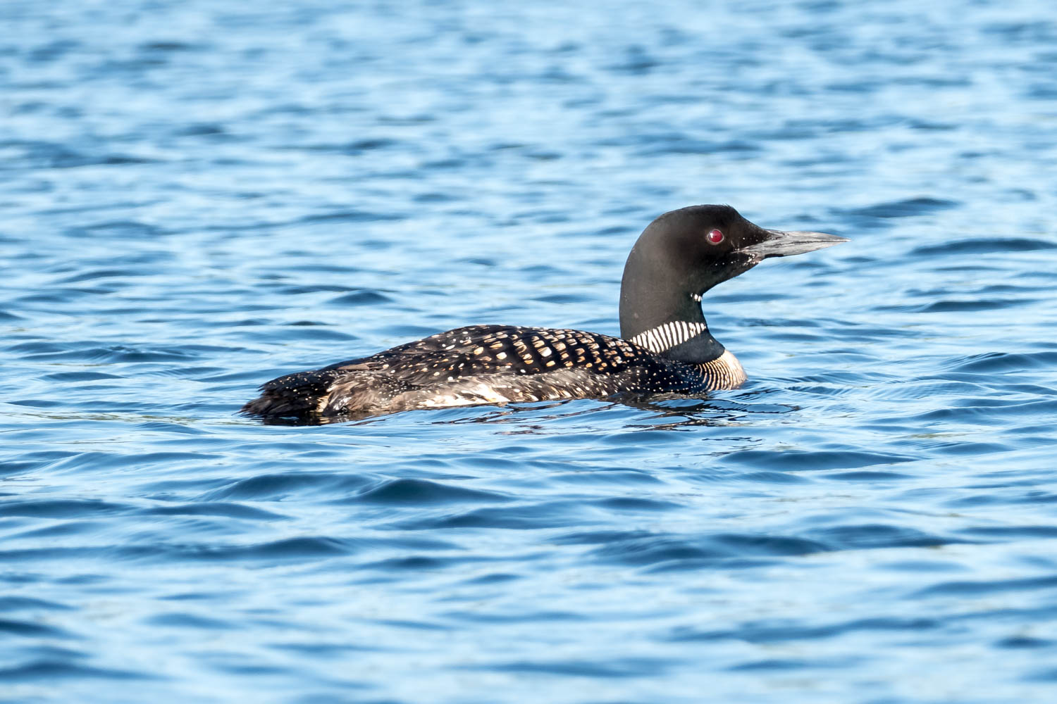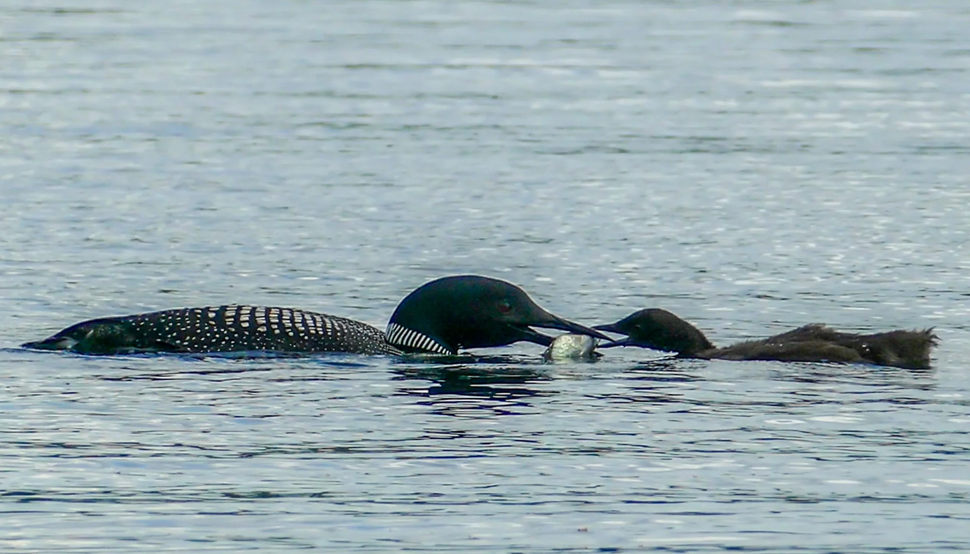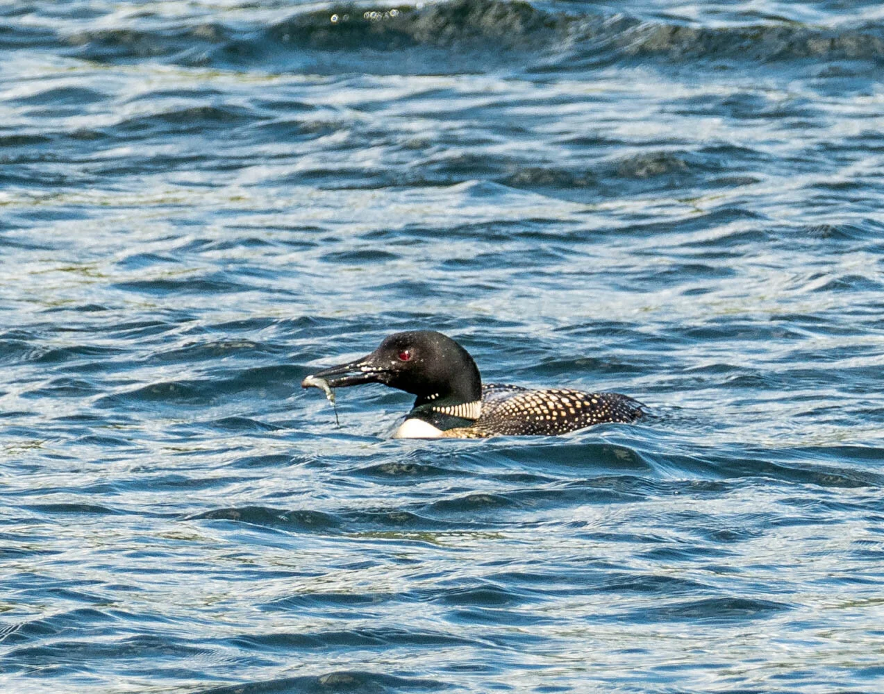 The other common birds on the lake are loons. They are beautiful diving birds and there is usually at least one nesting pair with possibly others on the far side of the lake. In 2019 the loons had a pair of chicks and we were at the island during the time that the chicks had to be fed by the parents so we saw a parent coming up from a dive with fish in its mouth to feed the chicks. I had always been a bit surprised how seldom we saw loons come up with fish following a dive, but perhaps this is because they swallow it right away and it is rare to be looking at the right spot as the loon emerges.