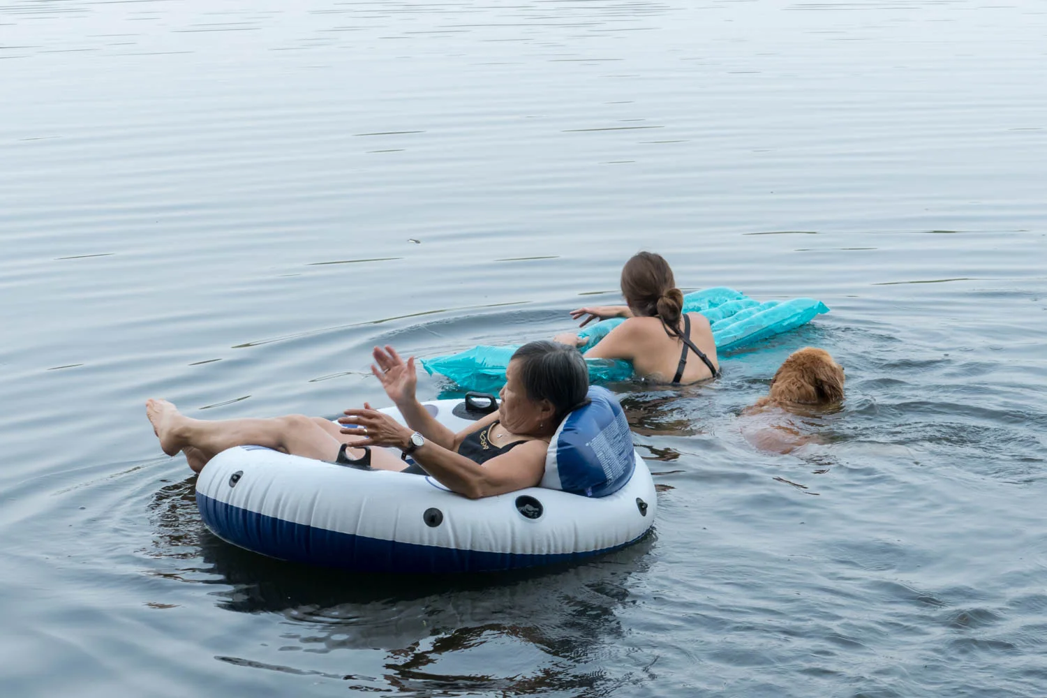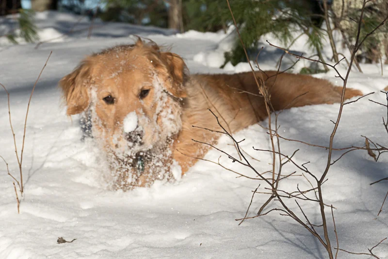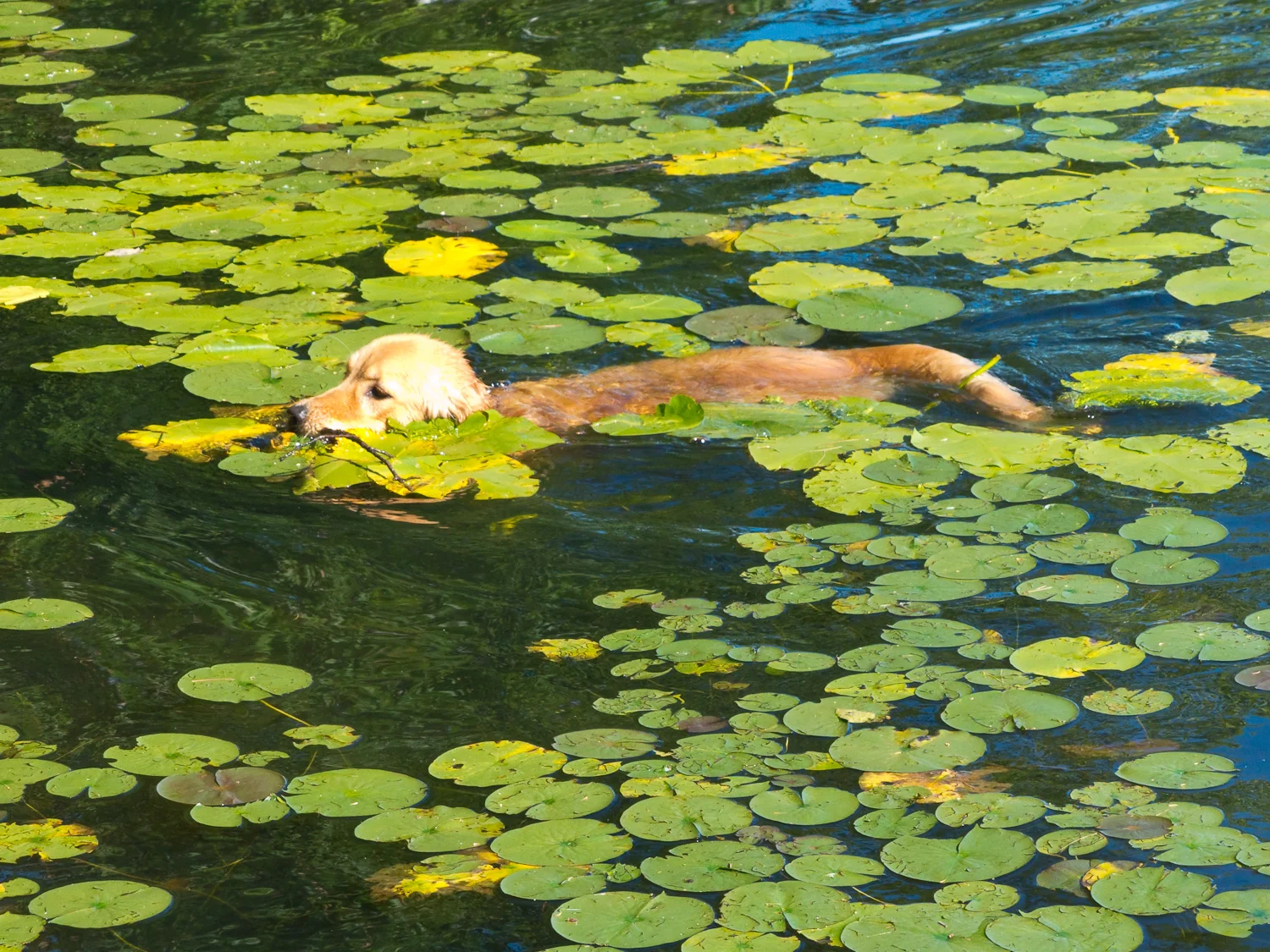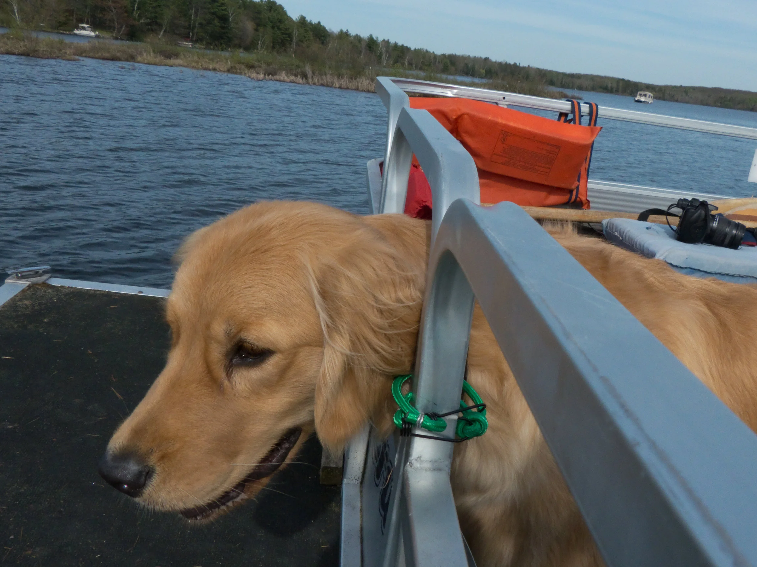 The island is a great place for Maple since we can pretty much let her run free without having to worry that she will bother the neighbors. There is some danger that she will swim out to greet any fishermen who try to get too close to the island. She loves to swim in the little area off the pier, usually spending her time chasing the minnows that she can see, but cannot catch, in the water. In the wintertime she seems impervious to the cold and snow and loves to frolic on the ice.
