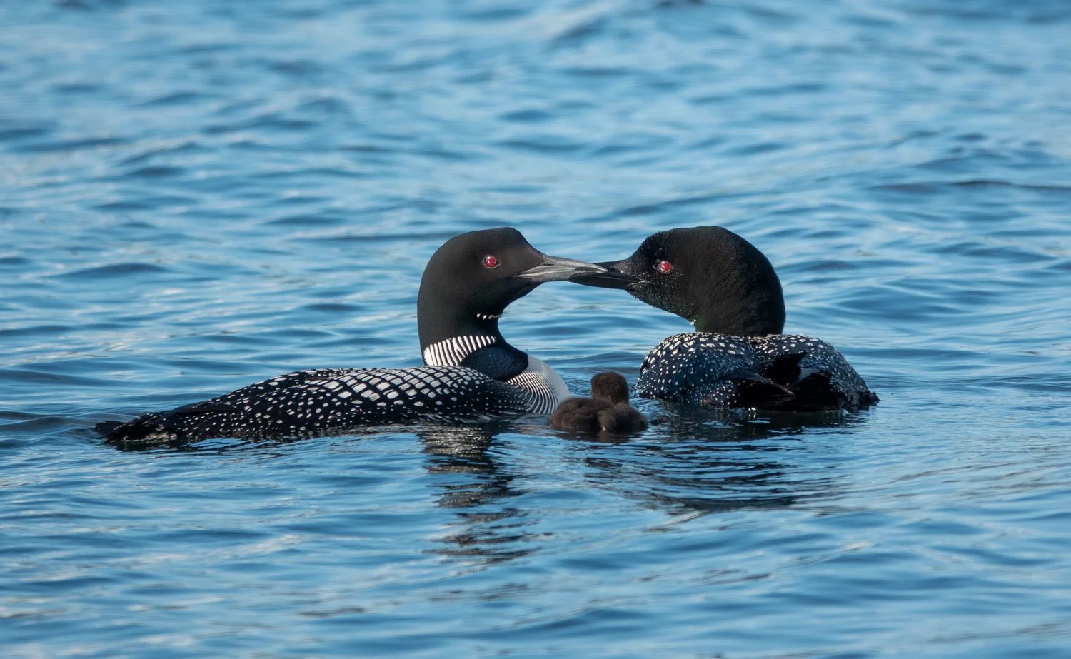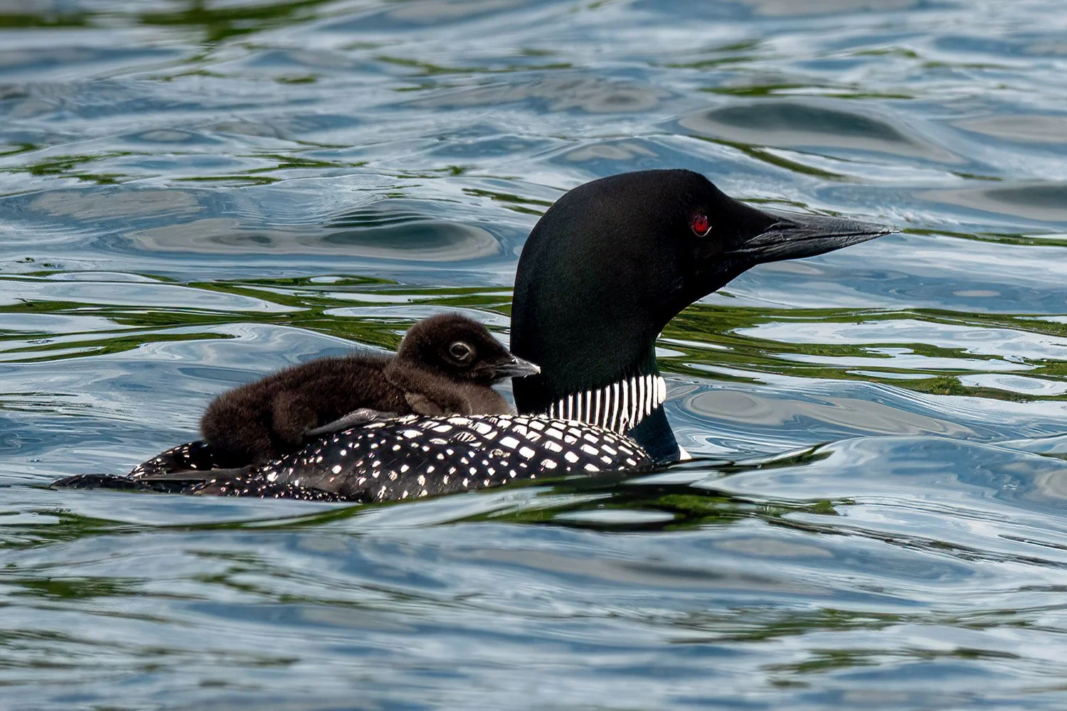 When we purchased the island, there was a large nest on a tall pine tree on the island. They raised two eaglets that first year, but a large wind storm blew the nest down in the fall. The next year a new nest appeared on a tall tree on the mainland. Assuming these are the same parents, they have successfully raised an eaglet each subsequent year.