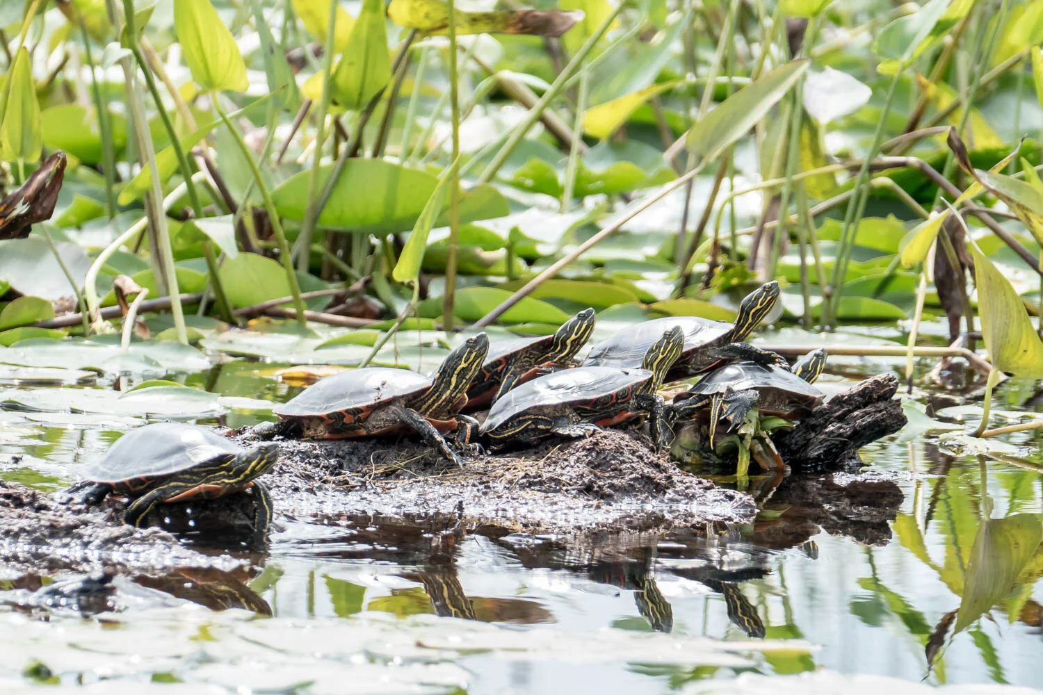 Several years ago we acquired a rustic cabin (see above) on a small island in northern Wisconsin near Hayward. Most of the pictures in this exhibit are taken from the island. I have been attracted to the Northwoods for many years, growing up in Colorado and living in Michigan for 7 years and Wisconsin for 43. We did many canoe camping trips in the wilderness areas of northern Ontario and in the Boundary Waters of Minnesota. Of special interest has been trying to photograph wildlife in their natural setting. Even though our island is only 5 acres, there’s a surprising number of wildlife that we’ve been able to observe. A resident pair of bald eagles, loons as well as turtles and other birdlife provide a constant source of interest. In addition, we have at least caught glimpses or seen signs of foxes, porcupine, otter, and beaver.
