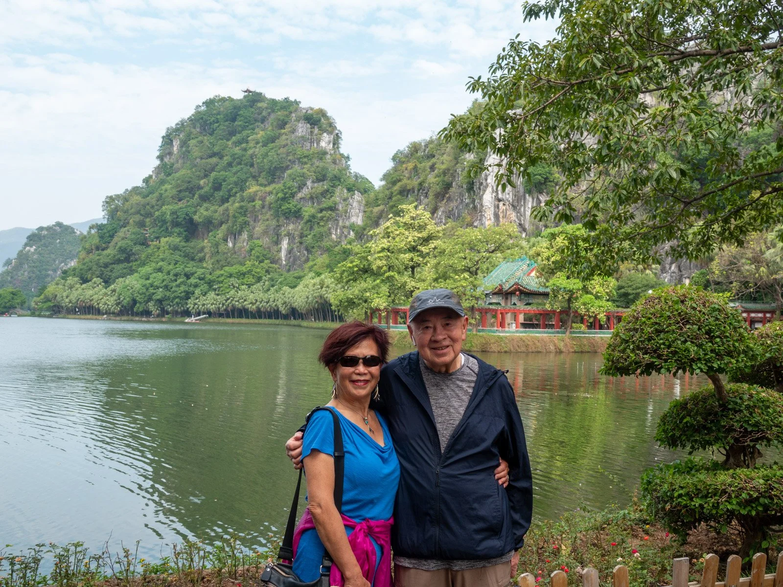 Margaret and Joseph with the Qingyun Tower in the background.